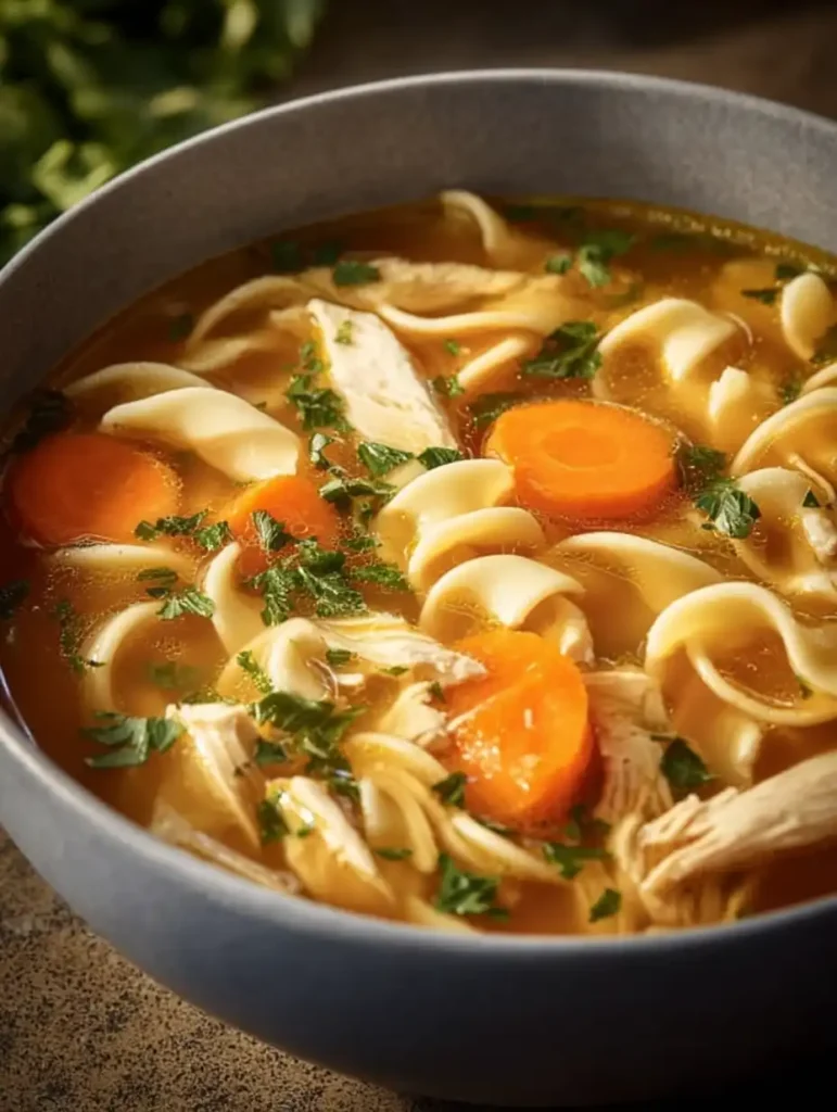 A heartwarming and nourishing classic chicken noodle soup perfect for chilly days and comfort meals.