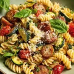 This Classic Chicken Sausage Pasta is a warm, simple, and satisfying meal you can make any night. It brings tender pasta, savory chicken sausage, and a bright, creamy tomato sauce together in one pan. It uses basic pantry items and everyday produce, so you can cook it fast without stress. It also scales well and holds up for lunches.