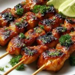 Step 6: Grill skewers 8–10 minutes total, turning every 2–3 minutes, until lightly charred and chicken reaches 165°F internal temp. During the last 2 minutes, brush with the reserved clean marinade for extra flavor.